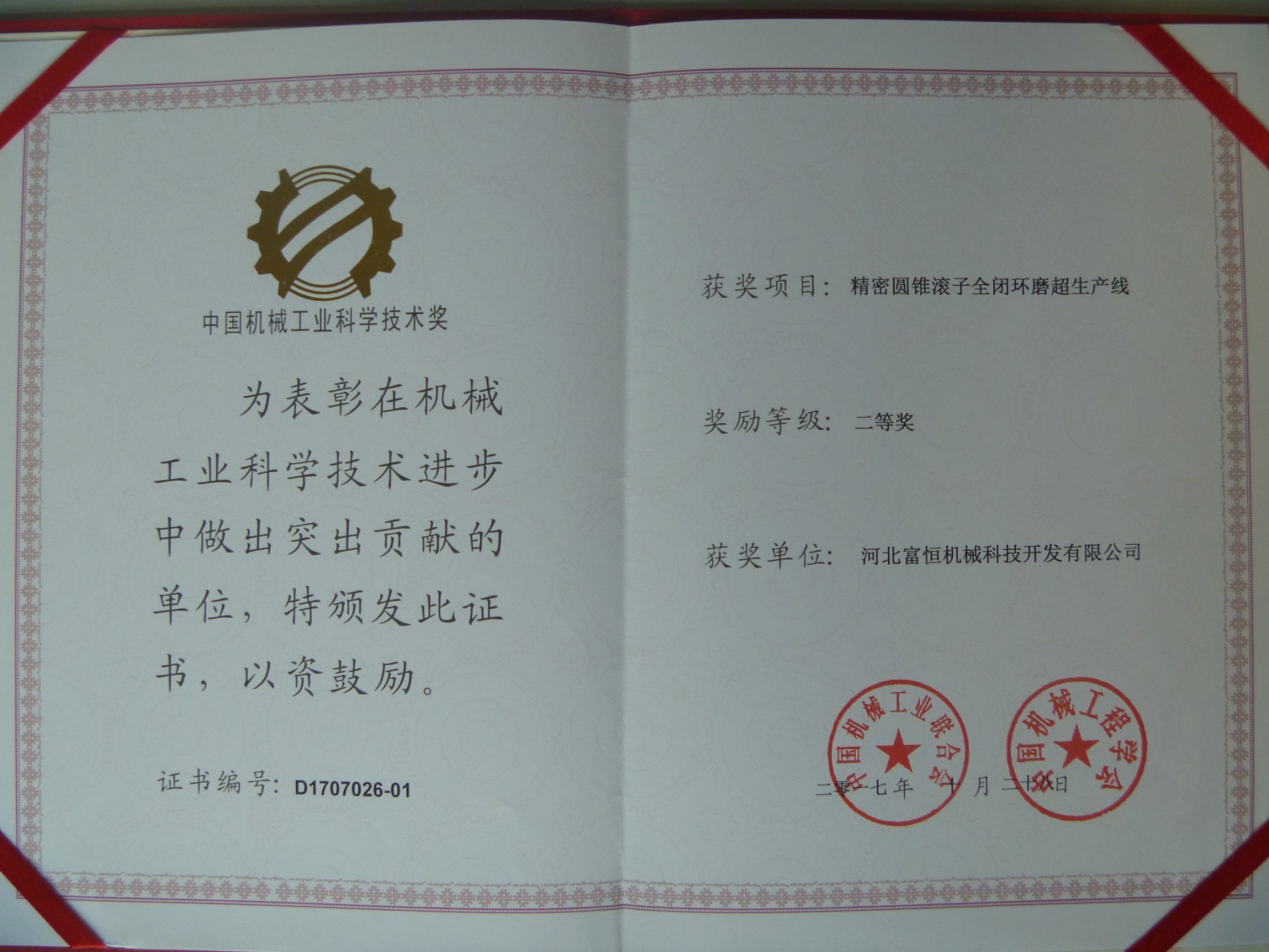 中國(guó)機(jī)械工業(yè)科學(xué)技術(shù)獎(jiǎng)